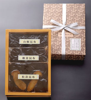 松茸昆布(甘口)、松茸佃煮、ちりめん昆布入り。